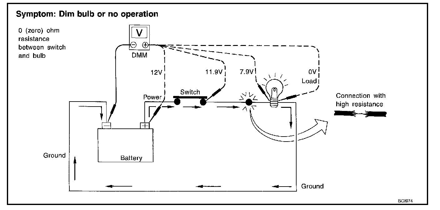 Electronically controlled circuits are very sensitive to proper grounding. A loose or corroded ground can drastically affect an electronically controlled circuit. A poor or corroded ground can easily affect the circuit. Even when the ground connection looks clean, there can be a thin film of rust on the surface.