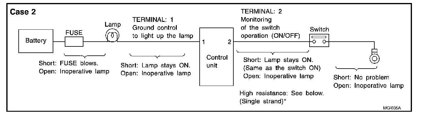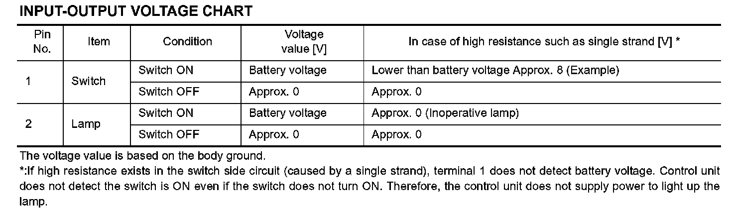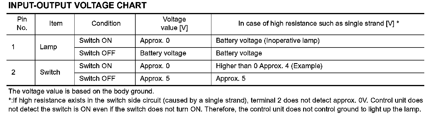 - When using a DMM, be careful not to let test probes get close to each other to prevent the power transistor in the control unit from damaging battery voltage because of short circuiting.