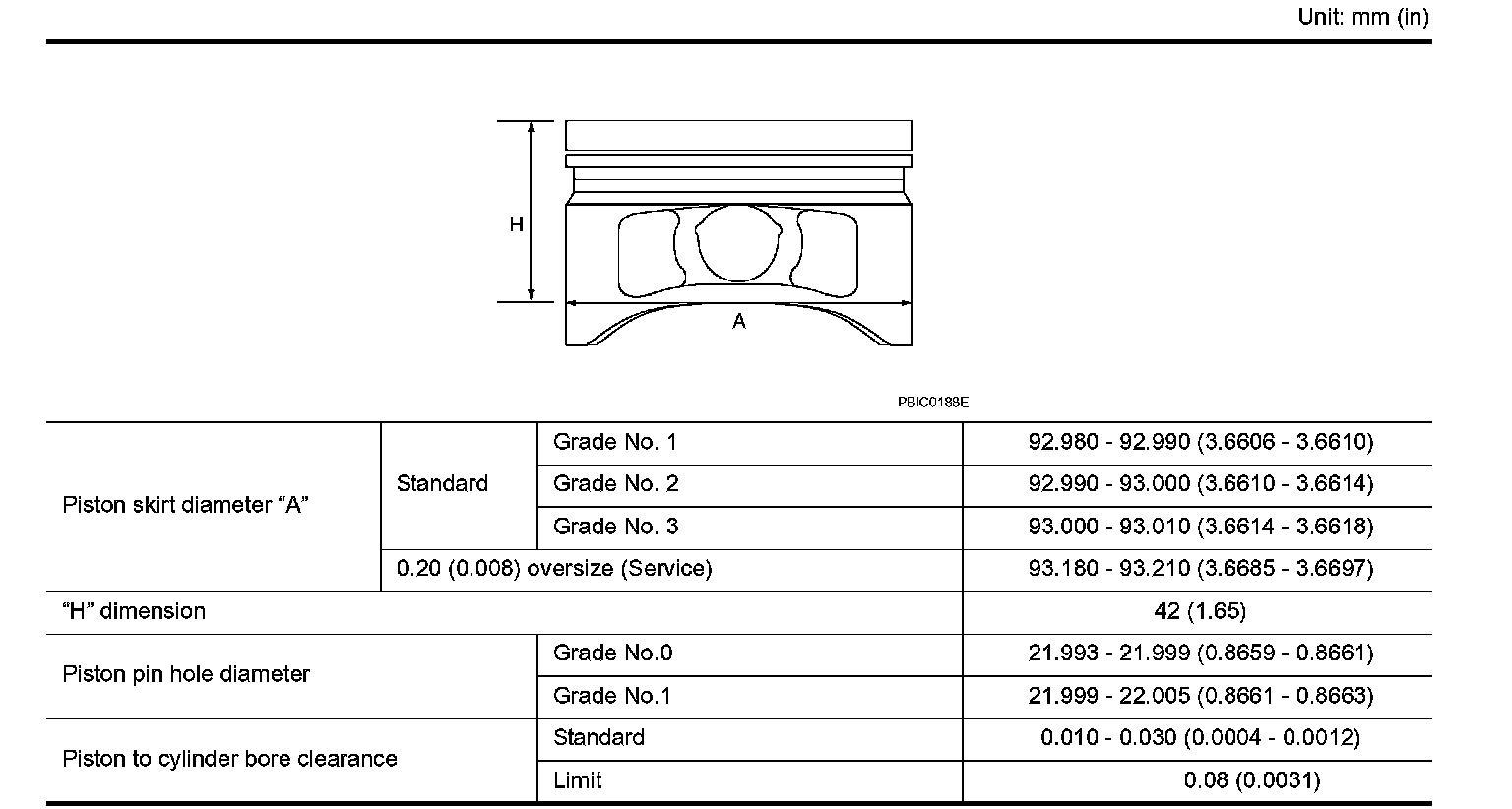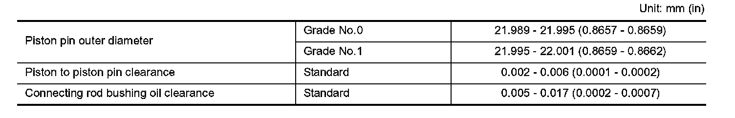 PISTON TO PISTON PIN CLEARANCEPiston Pin Hole Diameter
