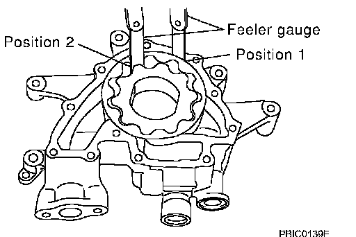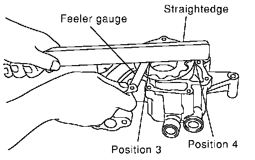 ^ Measure clearance with a feeler gauge and a straightedge. Side clearance between oil pump inner rotor and oil pump body (position 3)