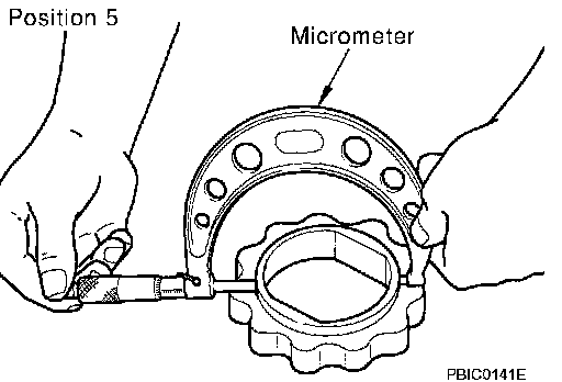 - Measure the outer diameter of protruded portion of oil pump inner rotor with a micrometer (Position 5)