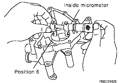 - Measure the inner diameter of oil pump body with an inside micrometer (Position 6)