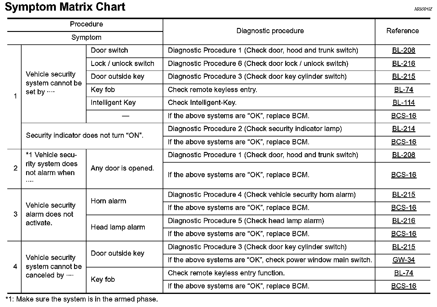 Symptom Matrix Chart: