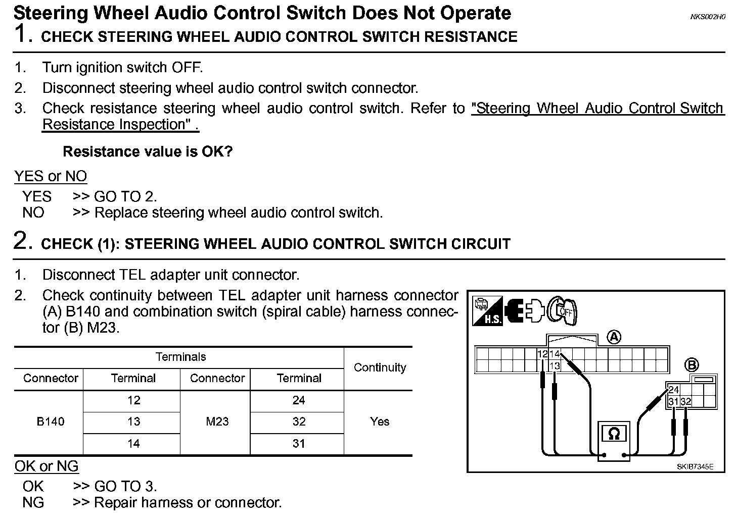 Steering Wheel Audio Control Switch Does Not Operate (Steps 3 - 5):