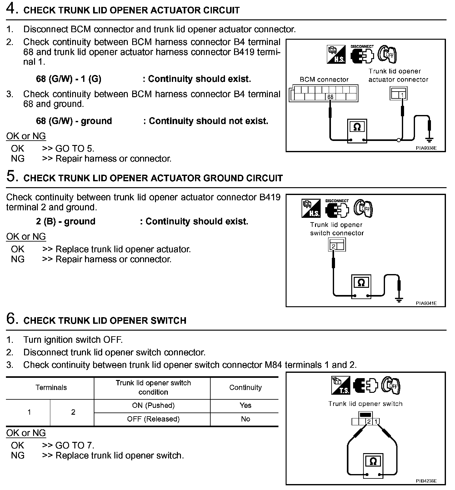 Trunk Does Not Open With Trunk LID Opener Switch/With Intelligent Key (Steps 4 - 6):