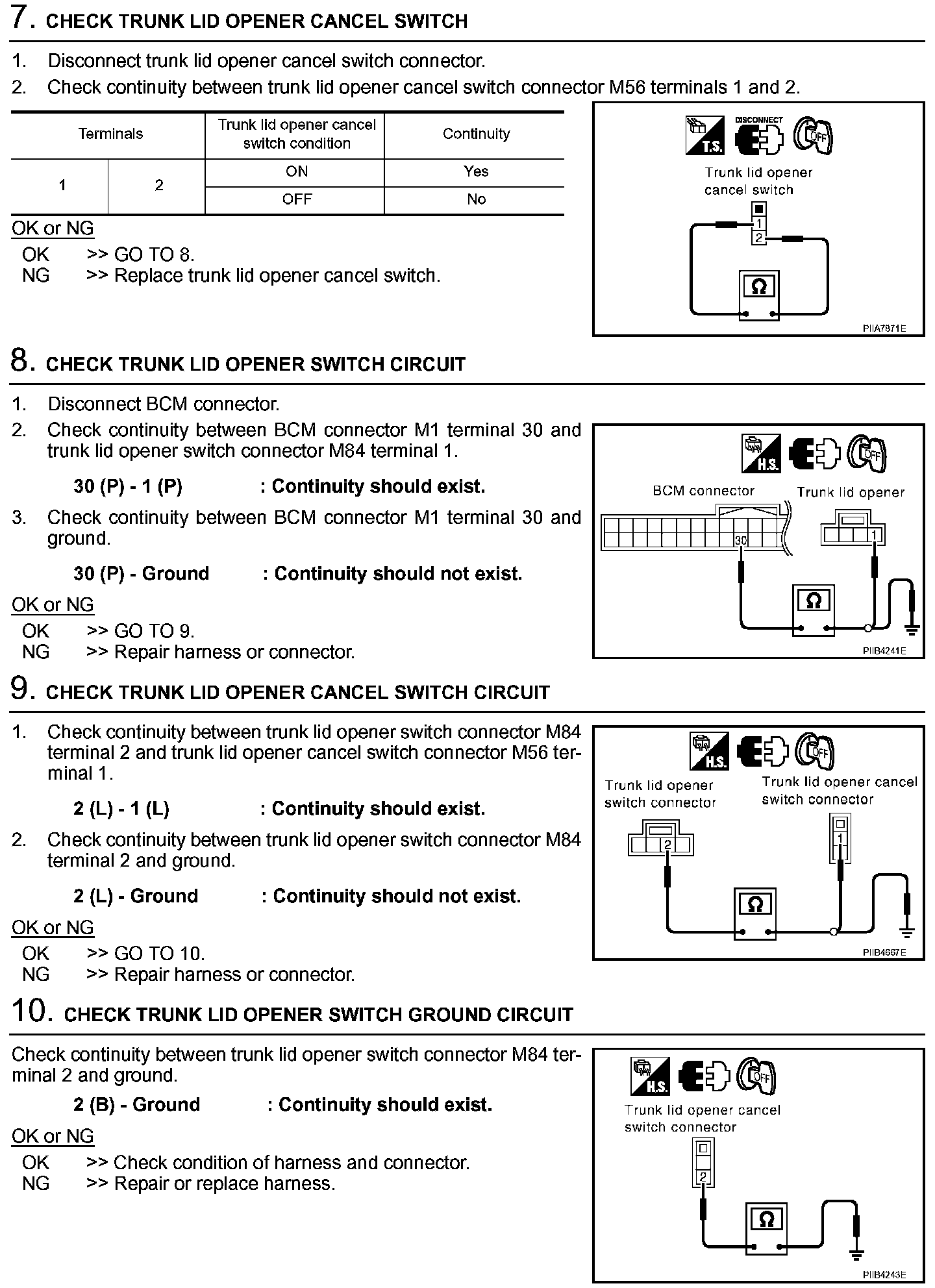 Trunk Does Not Open With Trunk LID Opener Switch/With Intelligent Key (Steps 7 - 10):