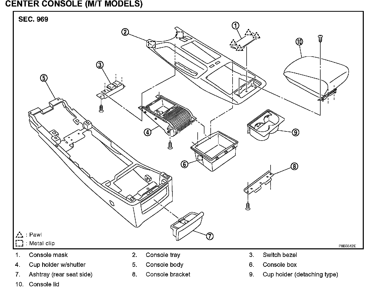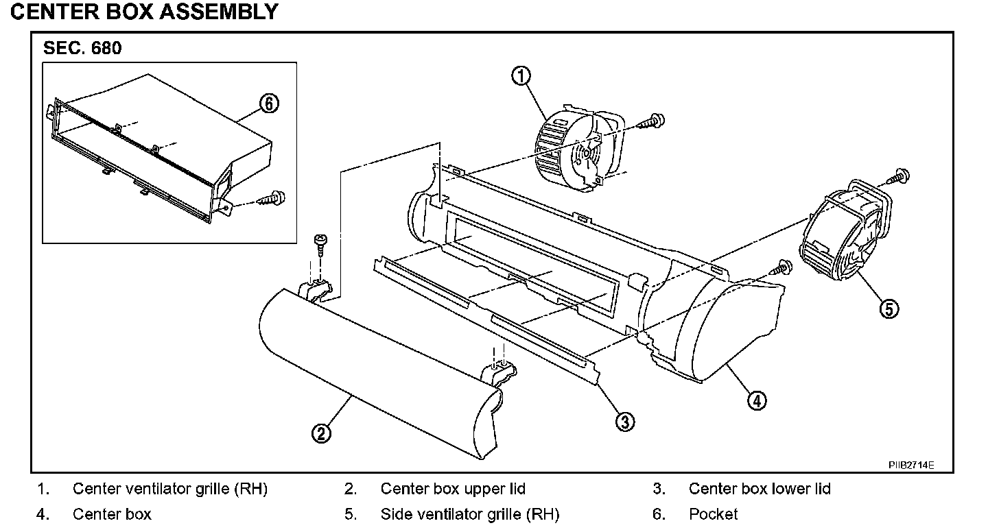 1. Remove screws and pawls, and then remove side ventilator grille (RH) and center ventilator grille.