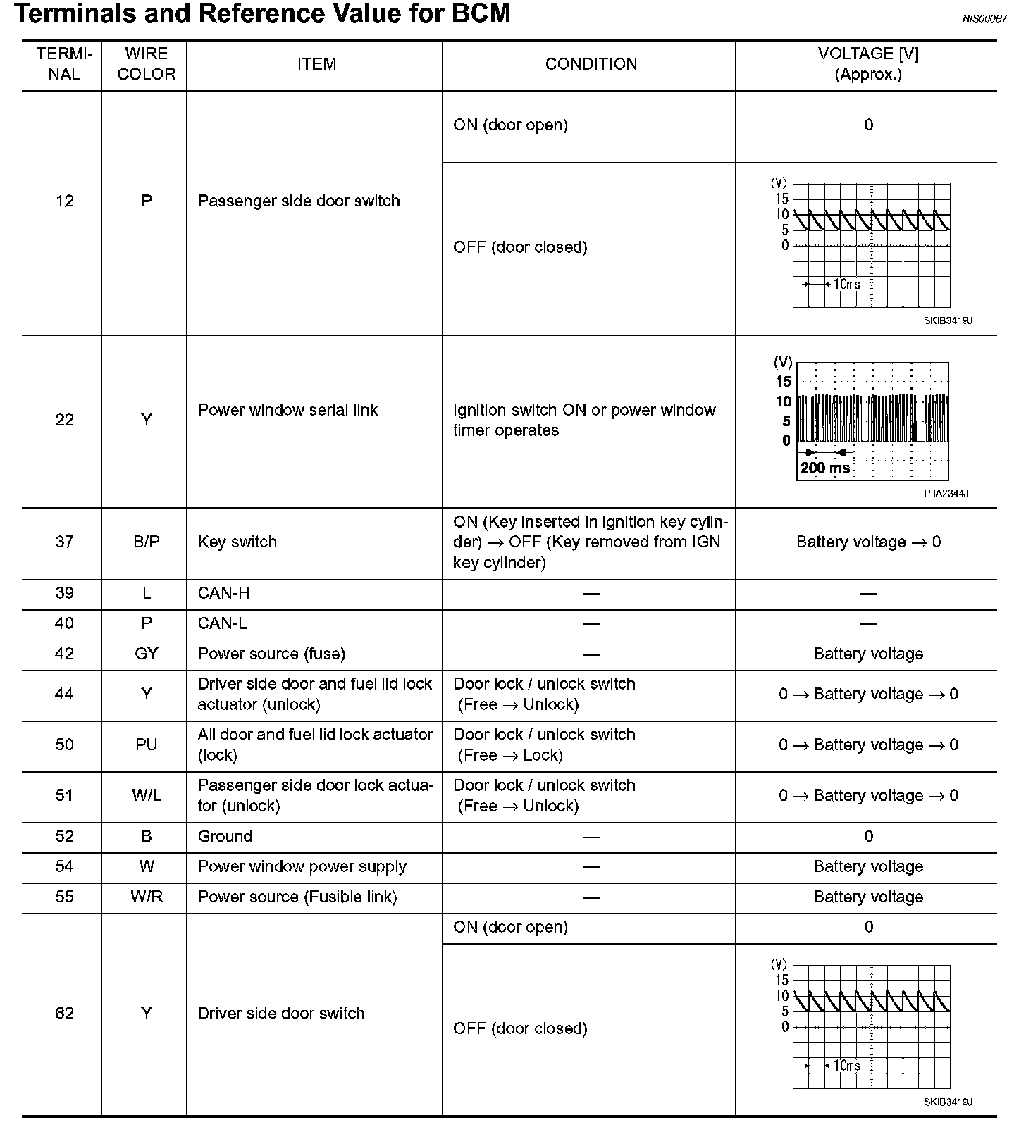 Terminals And Reference Value For BCM: