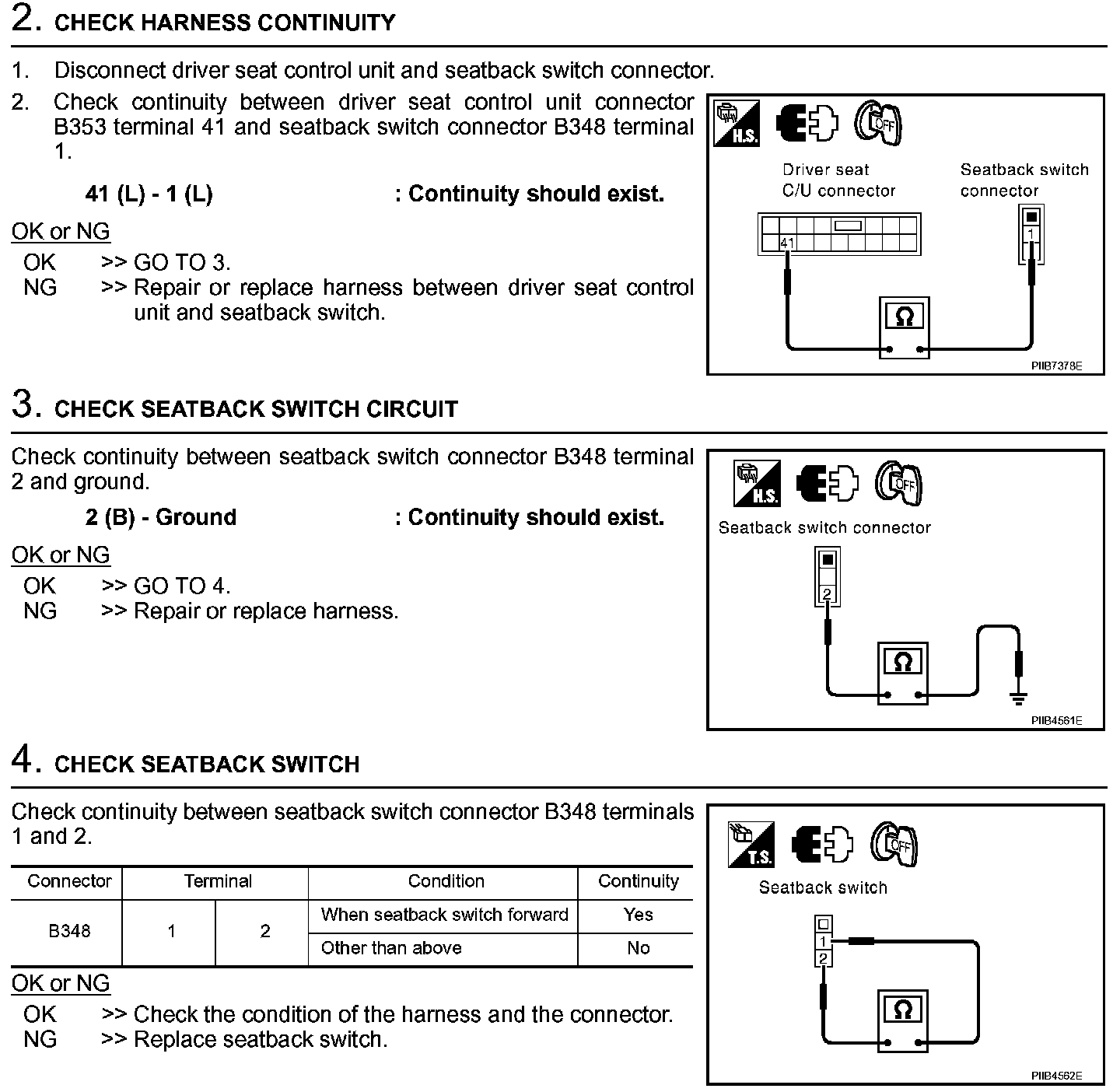 Check Seatback Switch Signal (Steps 2 - 4):