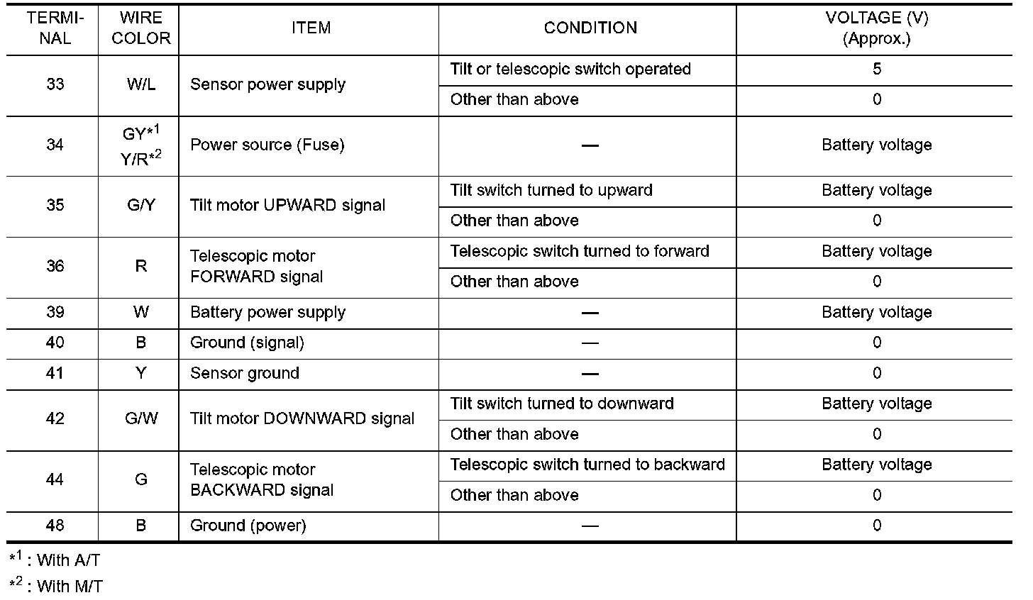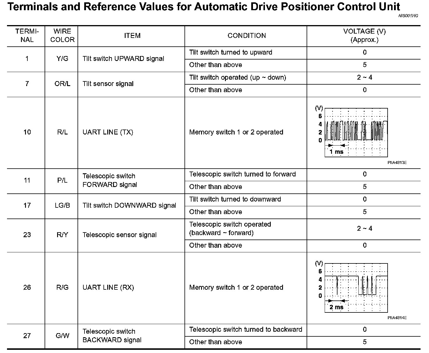 Terminals And Reference Values For Automatic Drive Positioner Control Unit Part 2: