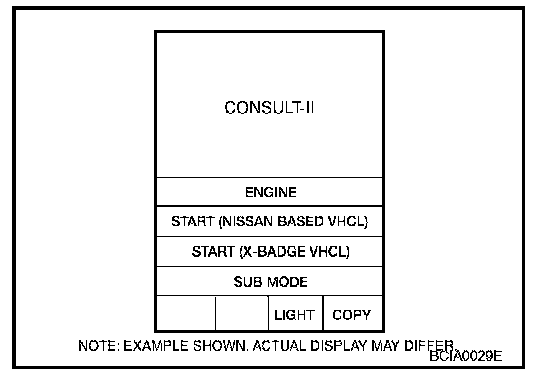 CONSULT-II INSPECTION PROCEDURECAUTION: If CONSULT-II is used with no connection of CONSULT-II CONVERTER, malfunctions might be detected in self-diagnosis depending on control unit which carry out CAN communication.