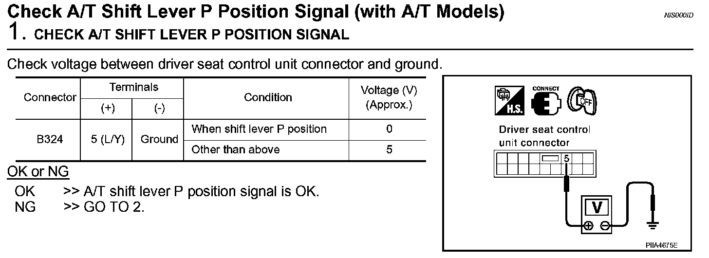 Check A/T Shift Lever P Position Signal (With A/T Models)