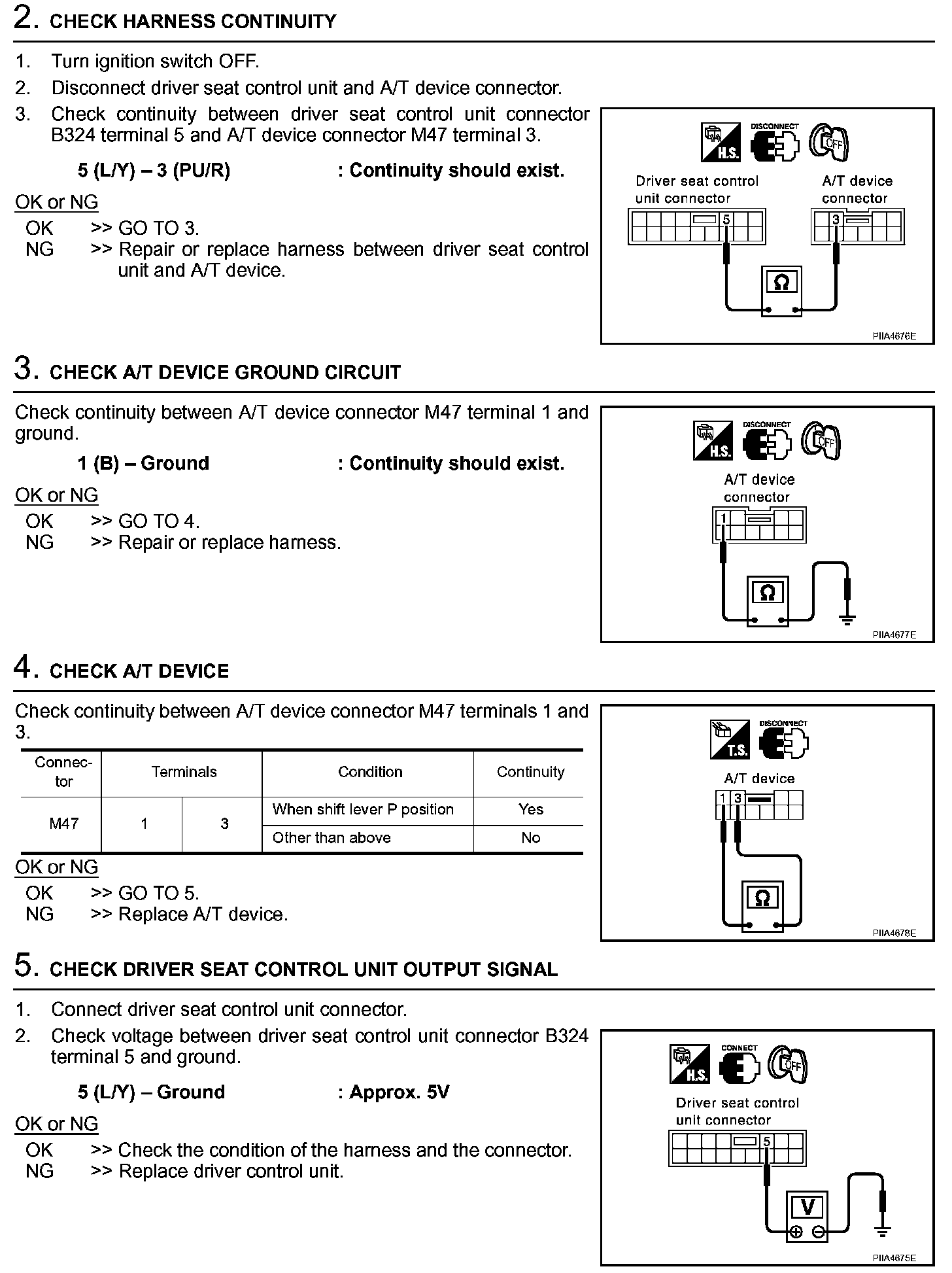 Check A/T Shift Lever P Position Signal (With A/T Models) (Steps 2 - 5):