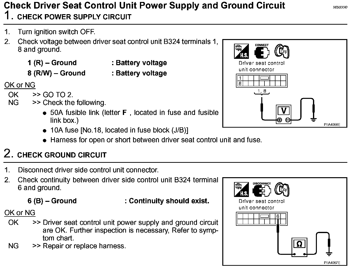 Check Driver Seat Control Unit Power Supply And Ground Circuit: