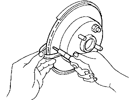 1. Using a micrometer, check thickness of disc rotor. If thickness is outside standard, replace disc rotor.
