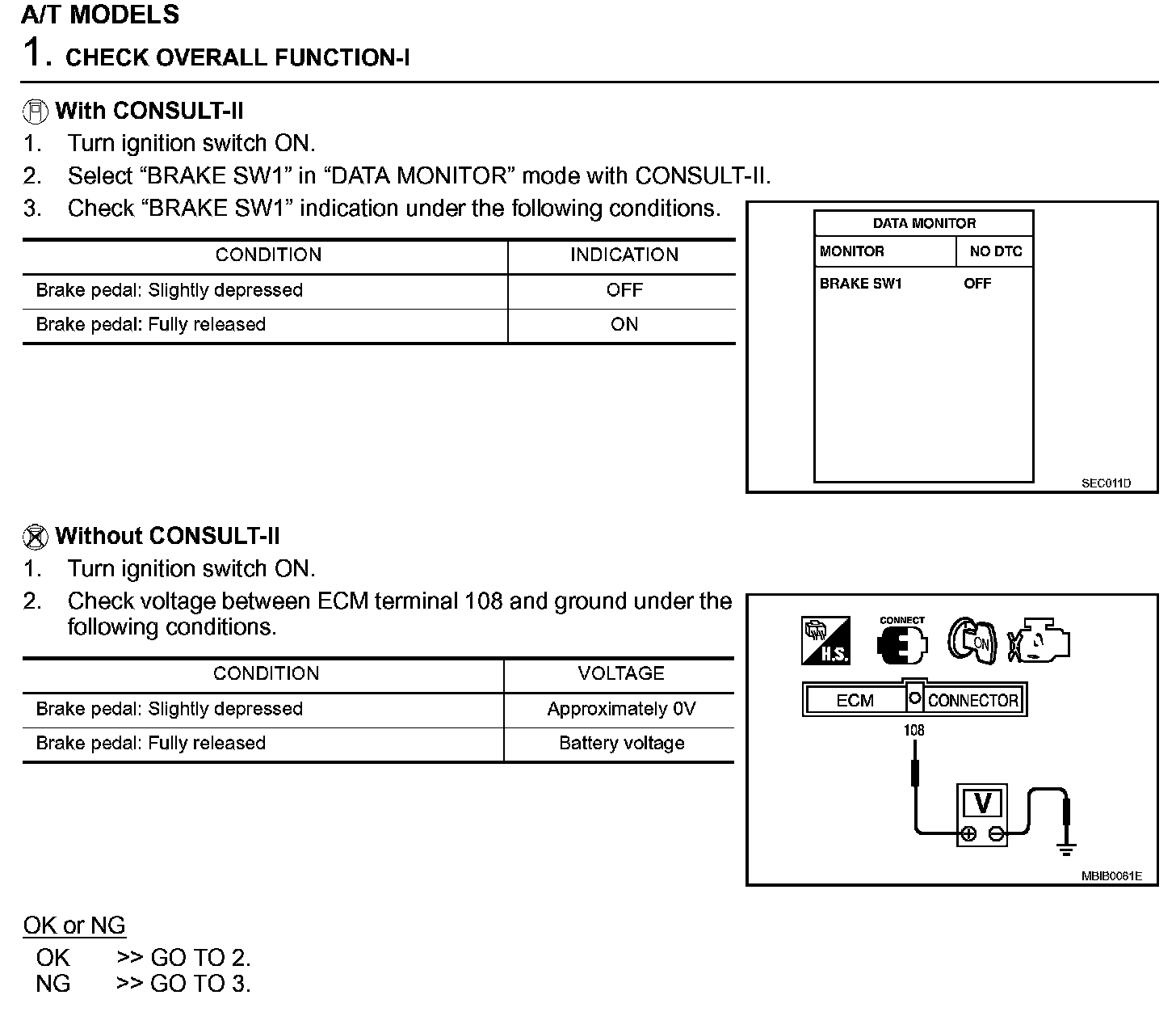 Diagnostic Procedure (A/T Models) (Step 1):