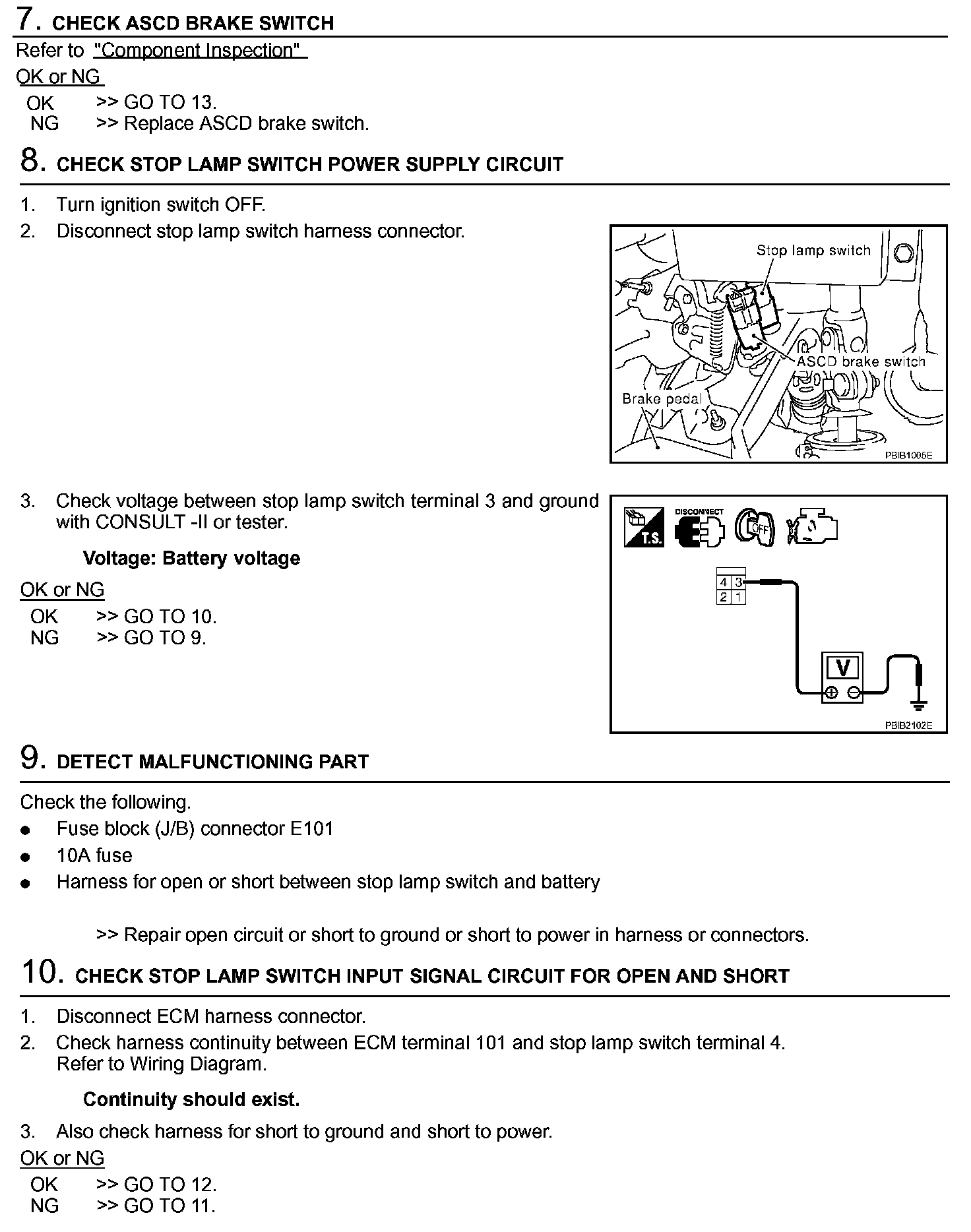 Diagnostic Procedure (A/T Models) (Steps 7 - 10):