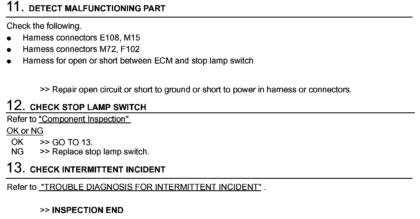 Diagnostic Procedure (A/T Models) (Steps 11 - 13):