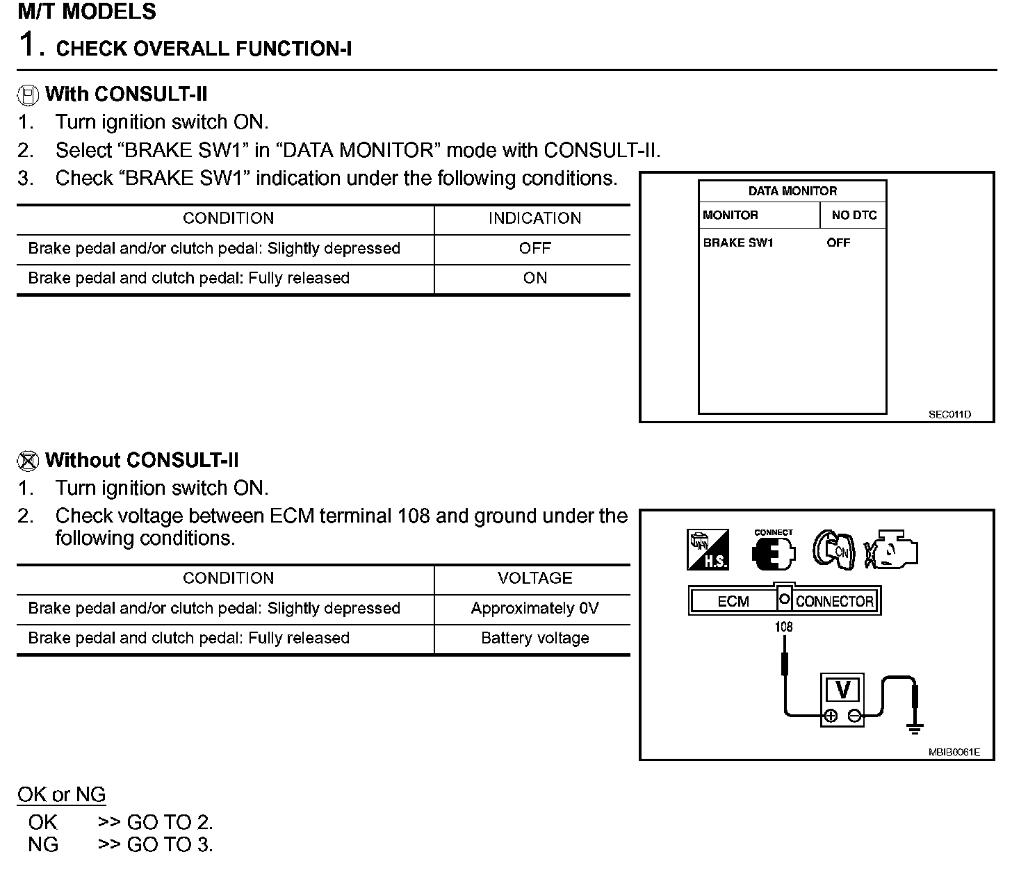 Diagnostic Procedure (M/T Models) (Step 1):