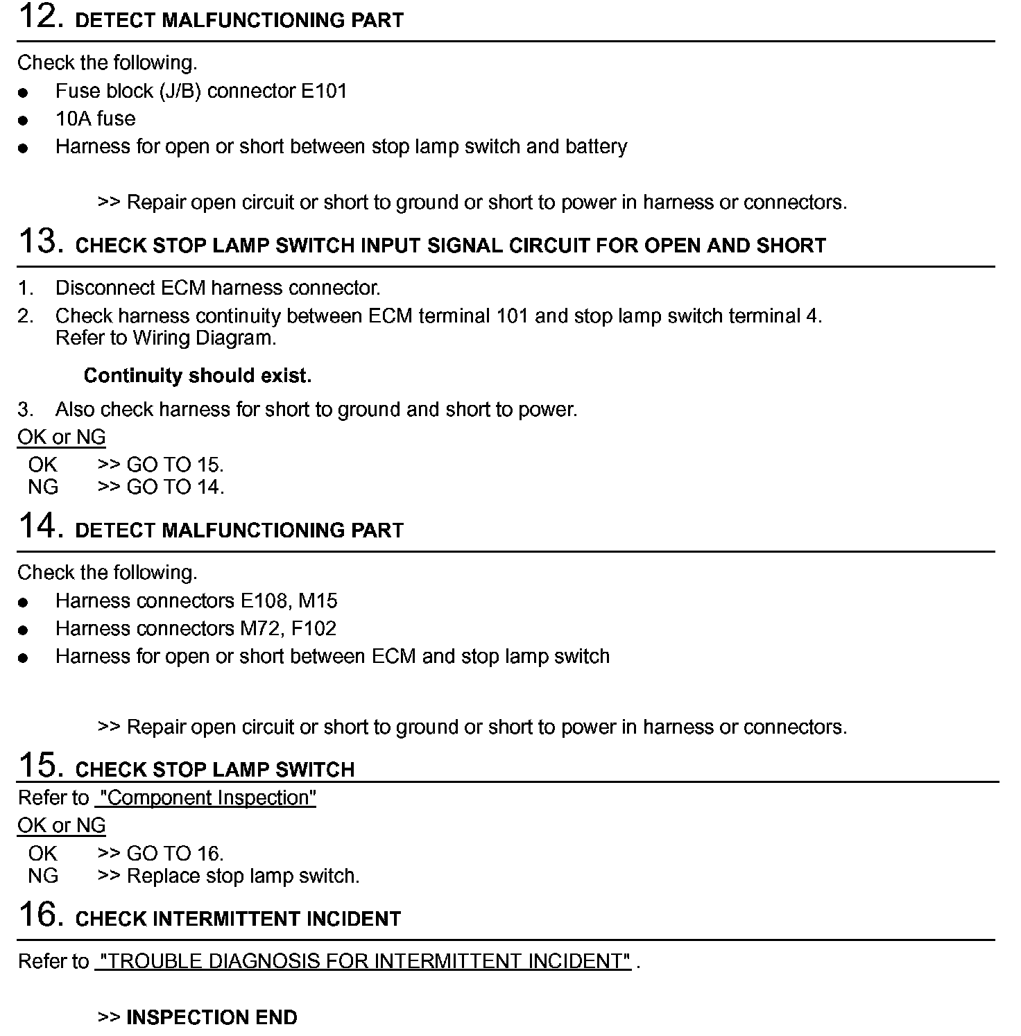 Diagnostic Procedure (M/T Models) (Steps 12 - 16):