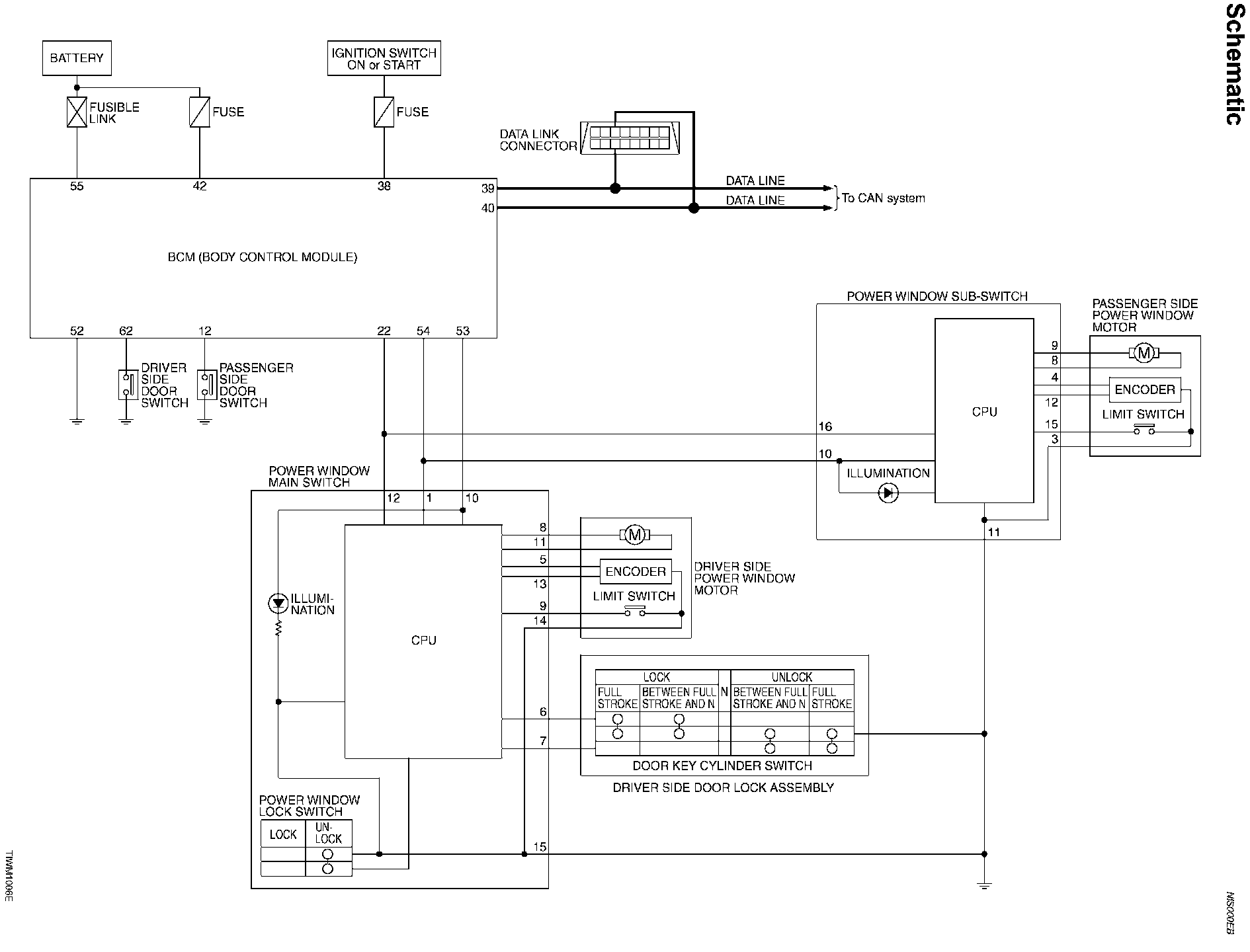 Power Window System Schematic: