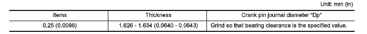 ^ If clearance exceeds the limit, select proper connecting rod bearing according to connecting rod big end diameter and crankshaft pin journal diameter to obtain specified bearing oil clearance.