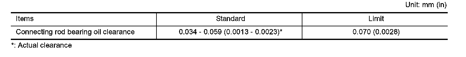 Standard: 0.034 - 0.059 mm (0.0013 - 0.0023 inch) (actual clearance)
