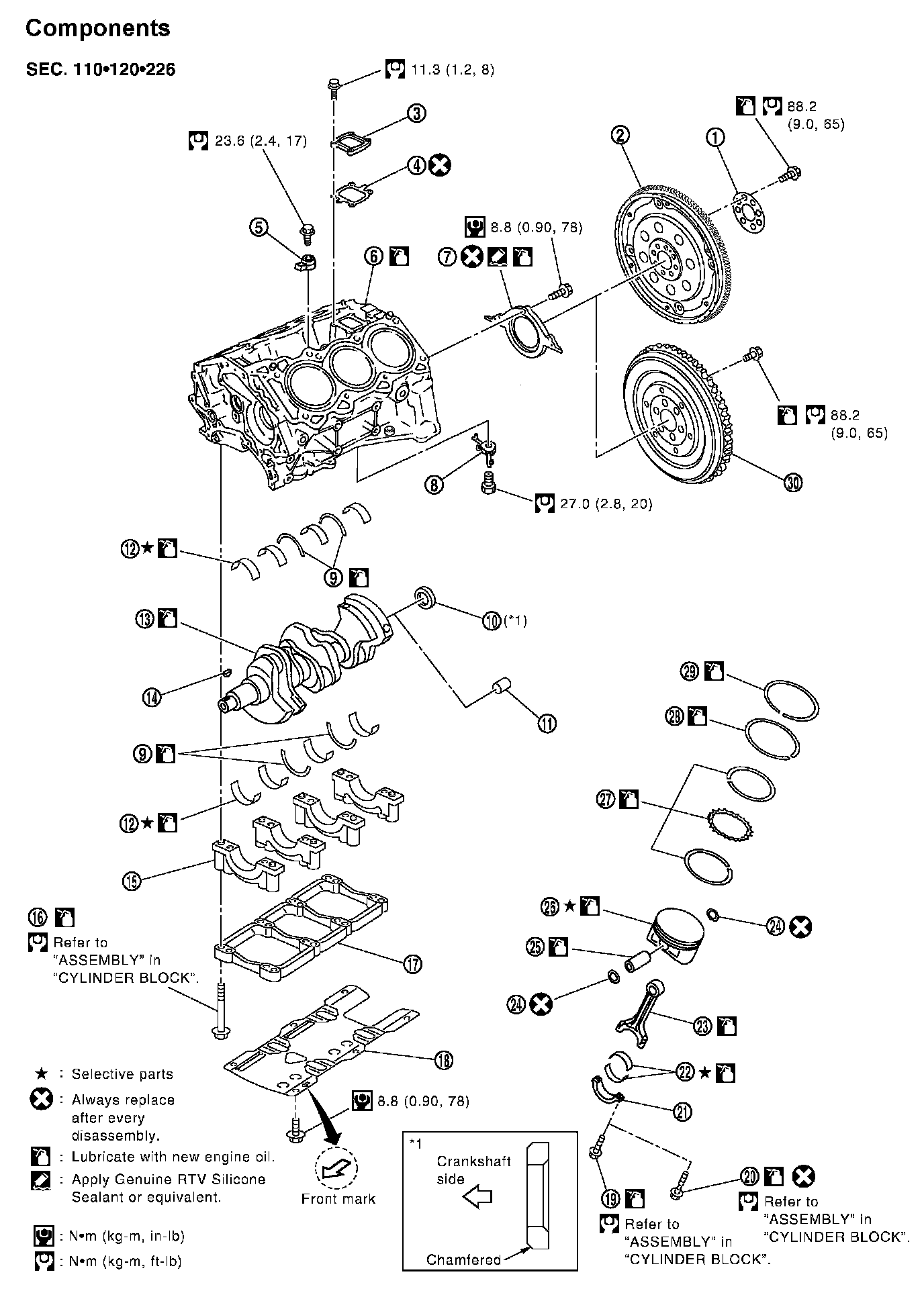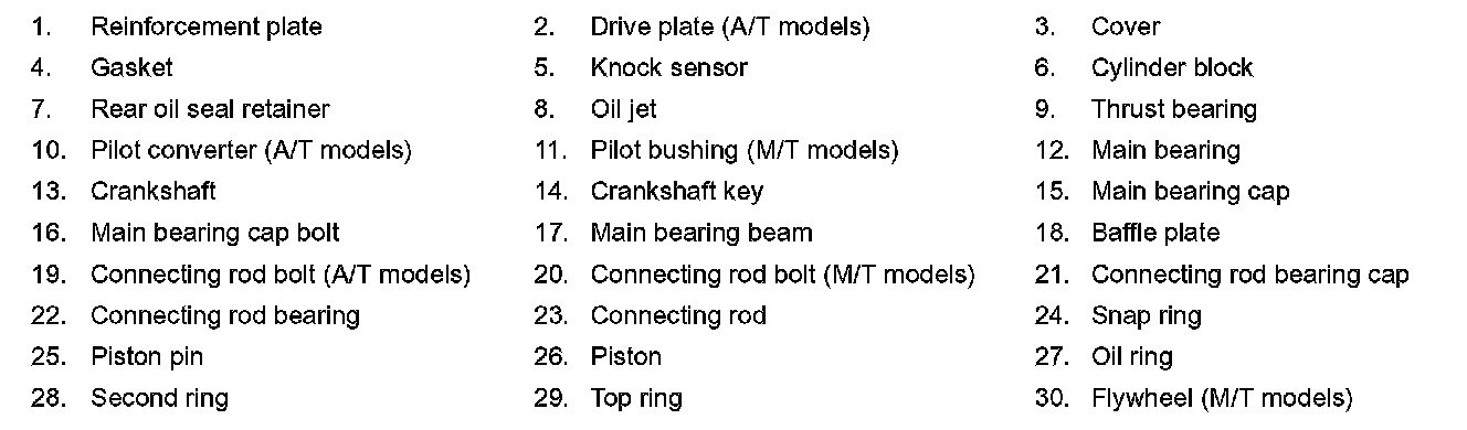 ^ Do not disassemble flywheel (M/T models) or drive plate (A/T models).