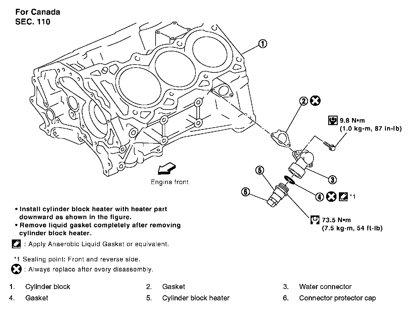 2. Install each water drain plug to cylinder block as shown in the figure.