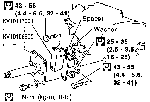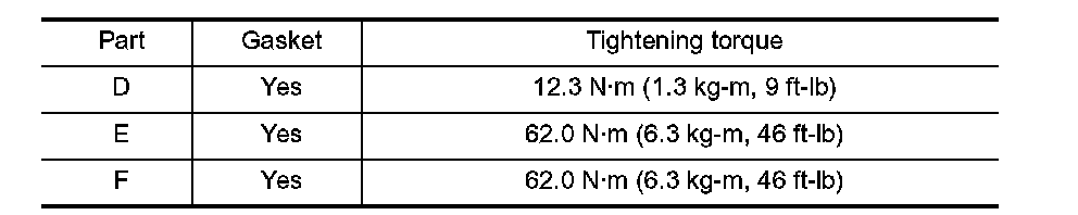 Torque: 32.3 - 38.3 Nm (3.3 - 3.9 kg-m, 24 - 28 ft. lbs.)
