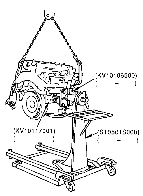 NOTE: This example is engine stand for holding at transmission mounting side with flywheel (M/T models) or drive plate (A/T models) removed.