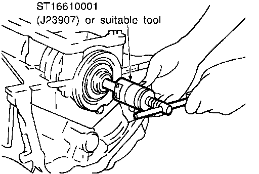 12. Remove pilot bushing (M/T models) or pilot converter (A/T models) using pilot bushing puller [SST] or suitable tool as necessary.