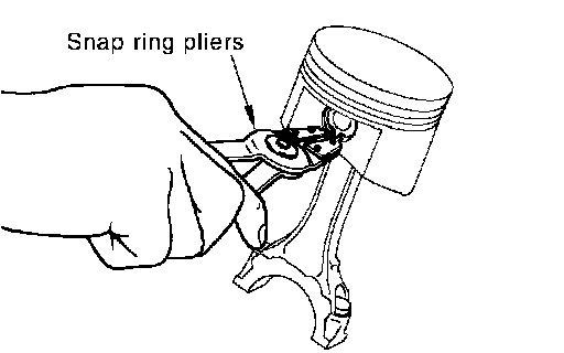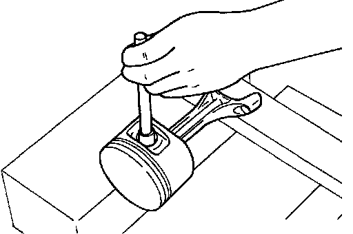 c. Push out piston pin with stick of outer diameter approximately 20 mm (0.79 inch).