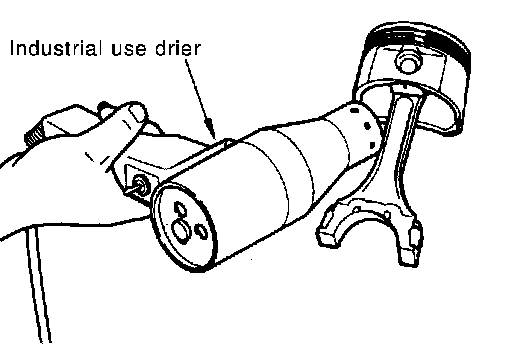 b. Heat piston to 60 to 70°C (140 to 158°F) with industrial use drier or equivalent.