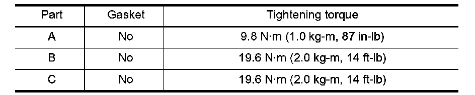 Torque: 18.6 - 20.6 Nm (1.9 - 2.1 kg-m, 14 - 15 ft. lbs.)
