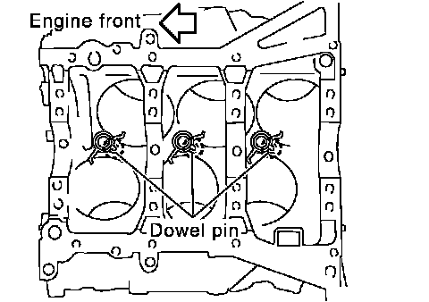 ^ When installing drive plate to crankshaft, be sure to correctly align crankshaft side dowel pin and drive plate side dowel pin hole.