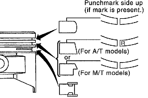 NOTE: Figure shows the piston A/T models. The front marks of M/T models are 2 punched.