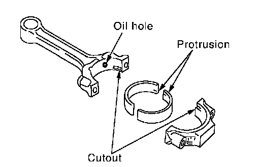 ^ When installing, align connecting rod bearing stopper protrusion with cutout of connecting rod and connecting rod cap to install.