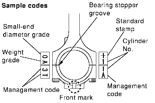 ^ Assemble so that the front mark on the piston head and the cylinder number on connecting rod are positioned as shown in the figure.