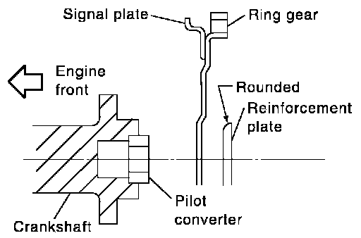 ^ Press-fit pilot converter with its chamfer facing crankshaft as shown in the figure. (A/T models)