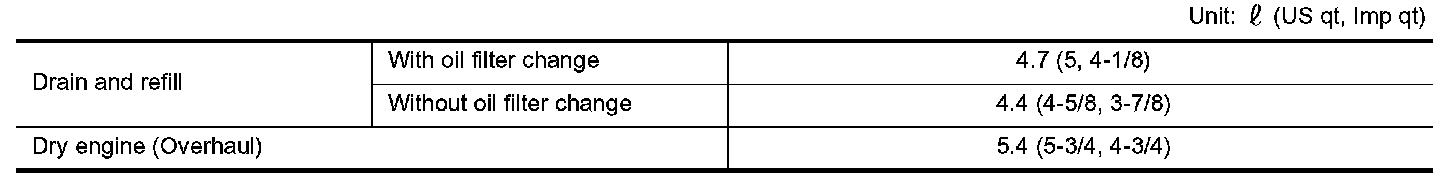 OIL CAPACITY (APPROXIMATE):