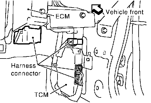 2. Disconnect engine room harness connectors at unit sides TCM (A/T models), ECM and other.