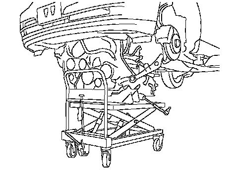 1. Use a manual lift table caddy (commercial service tool) or equivalently rigid tool such as transmission jack. Securely support bottom of suspension member and transmission.