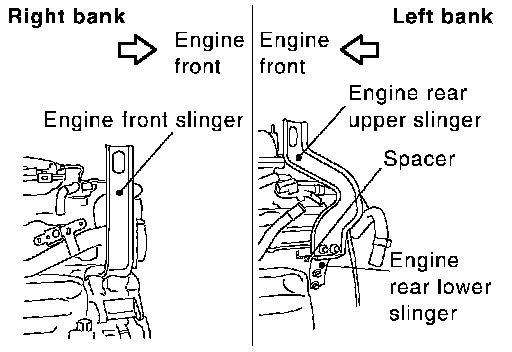 1. Install engine slingers into front of right bank cylinder head and rear of left bank cylinder head.