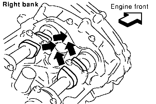 b. Make sure that intake and exhaust cam noses on No. 1 cylinder (engine front side of right bank) are located as shown in the figure.