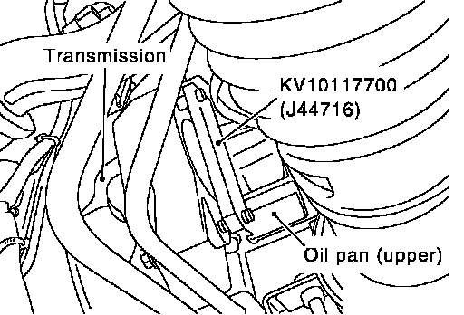 ^ Use seal cutter [SST: KV10111100 (J37228)] to cut liquid gasket for removal.