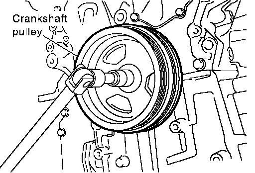 d. Turn crankshaft pulley bolt 90 degrees clockwise (angle tightening).