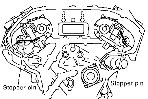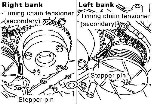a. Attach suitable stopper pin to the right and left timing chain tensioners (secondary).