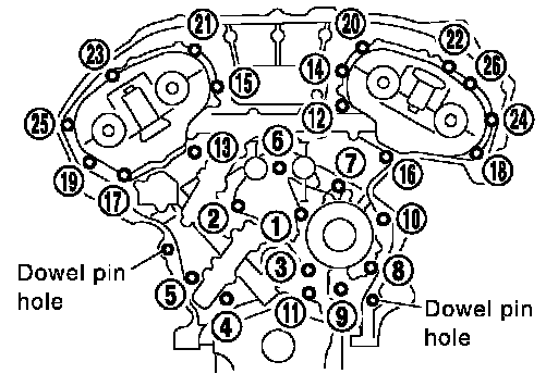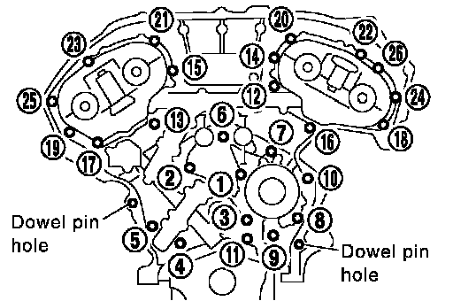CAUTION: Always perform this procedure when removing because the gap between dowel pins and dowel pin holes may not be caused on purpose.