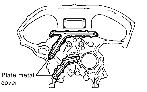 ^ After removal, handle rear timing chain case carefully so it does not tilt, cant, or warp under a load.